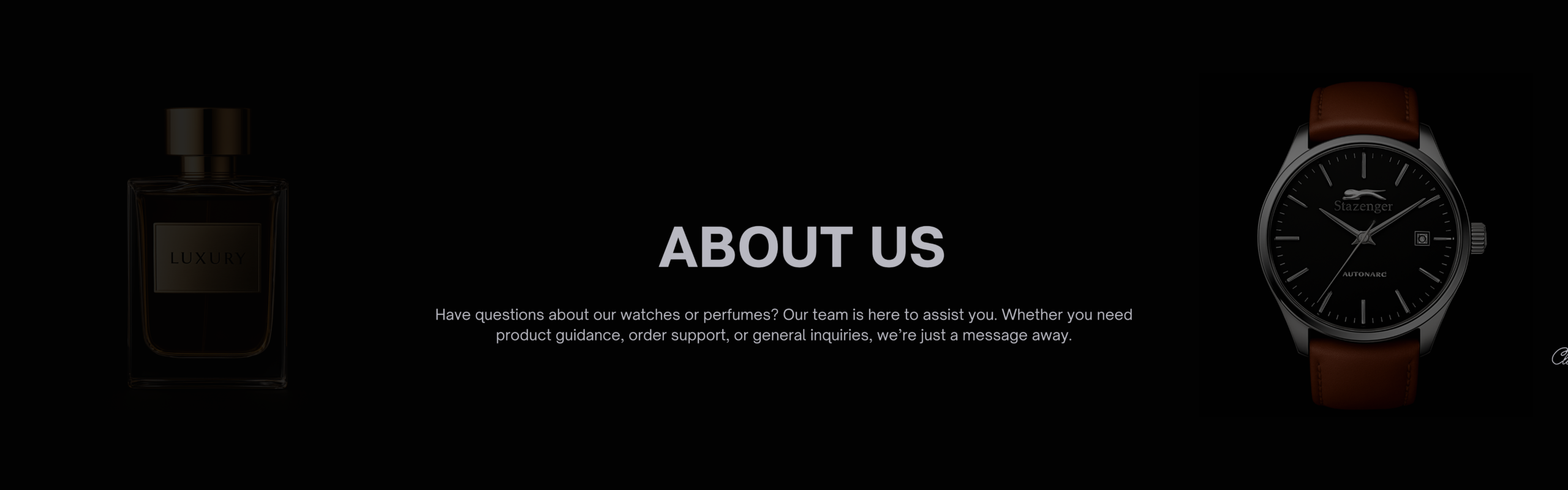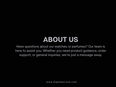 Have questions about our watches or perfumes? Our team is here to assist you. Whether you need product guidance, order support, or general inquiries, we’re just a message away. We are committed to providing prompt, professional, and personalized support to ensure a seamless shopping experience.