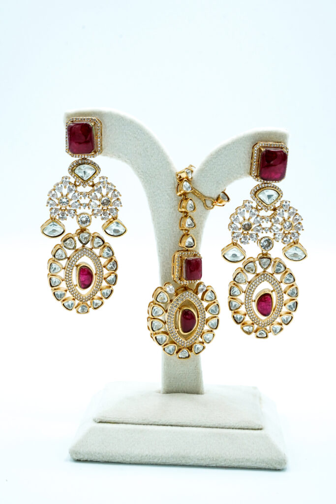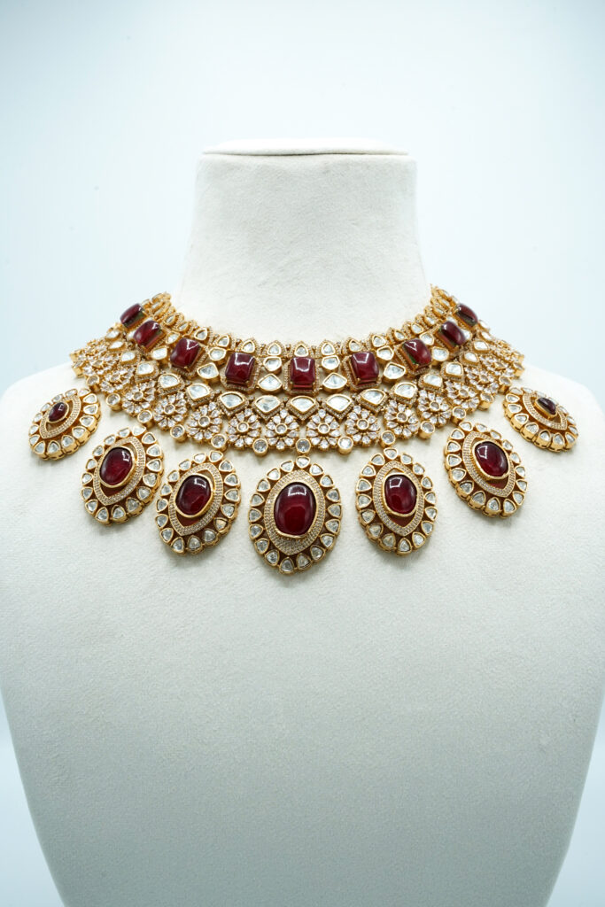 • Artisanal Detailing: Features intricate floral motifs and faux-Polki stone settings that replicate traditional high-jewelry techniques.