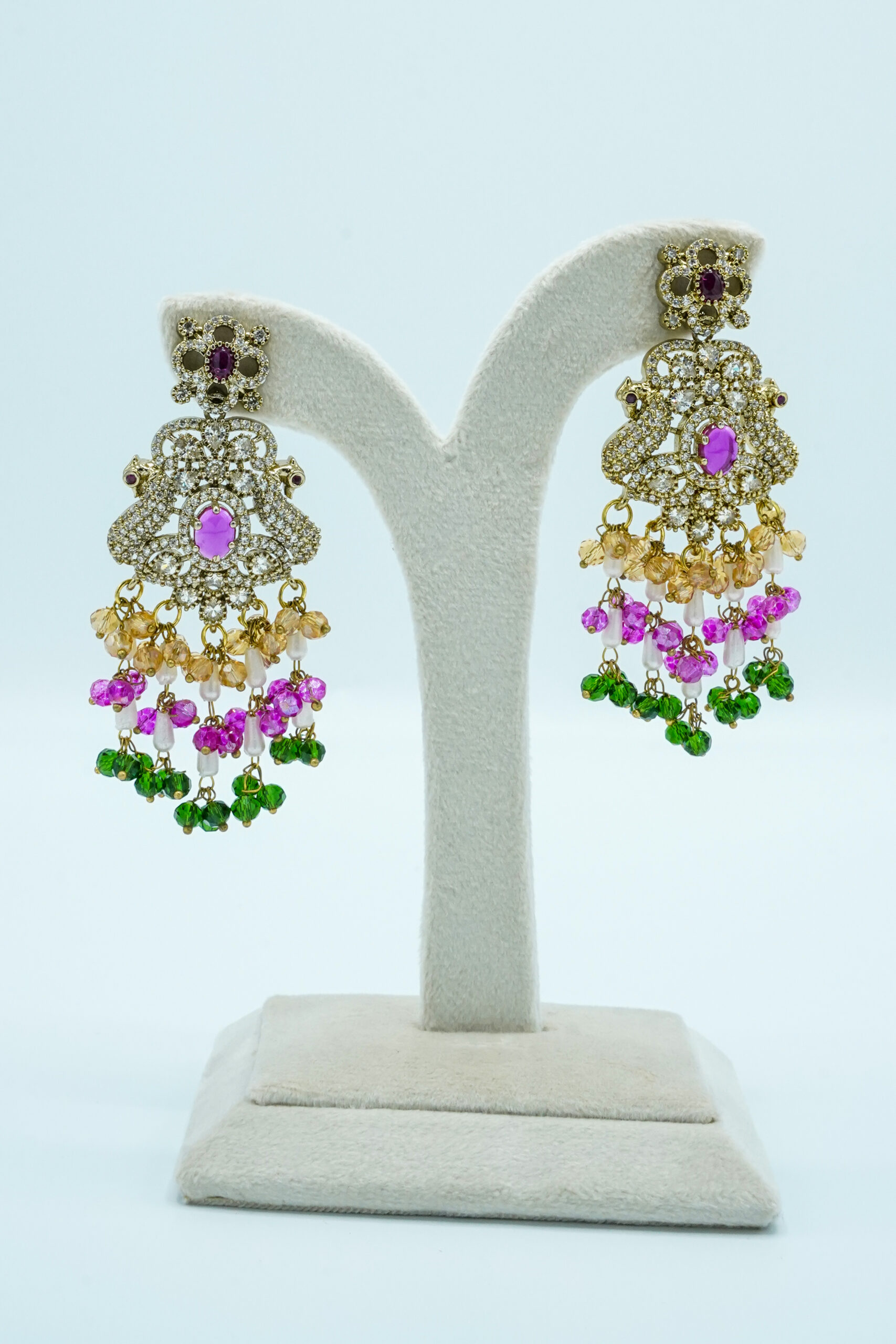 • Matching Grandeur: Comes with large, matching drop earrings that mirror the detailed design and colorful beadwork of the necklace.
