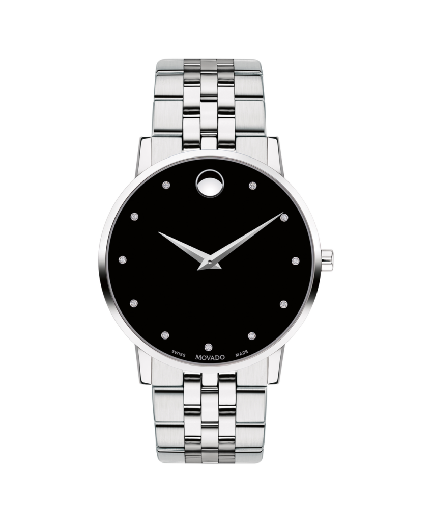 No Markers. Movado Dot marks the 12 o’clock position