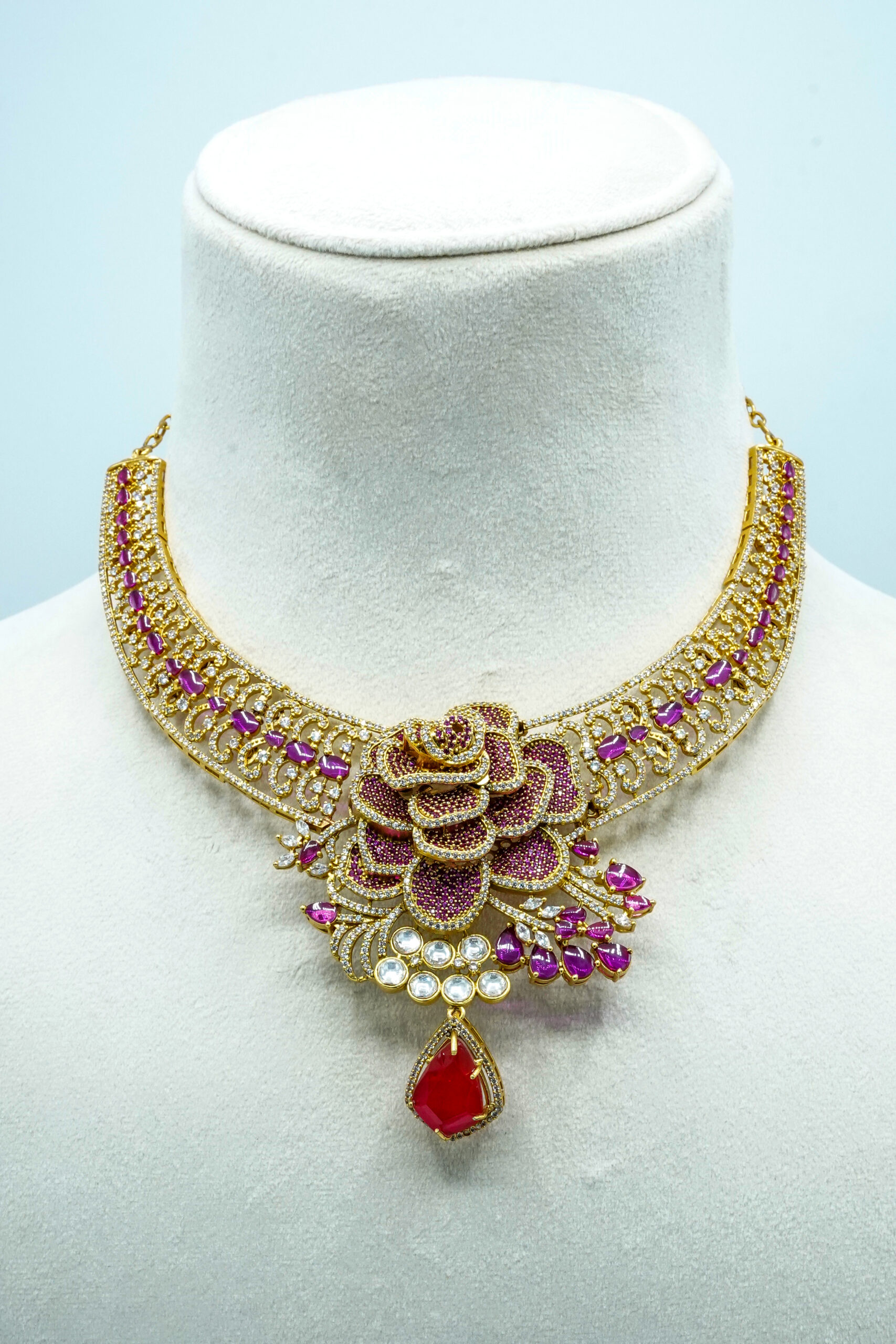 • Store Individually: Keep the necklace and earrings in separate compartments to prevent the intricate stone work from scratching.