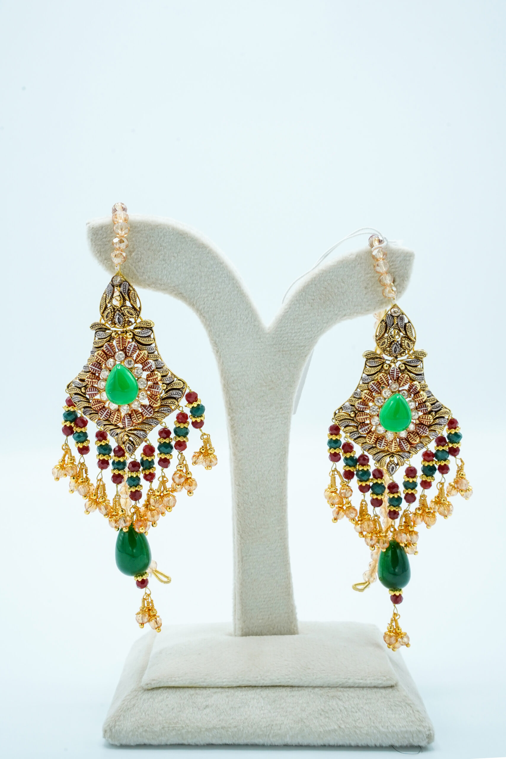 Vibrant Stones: Adorned with high-quality synthetic Emerald (Green) and Ruby (Red) stones, complemented by champagne crystal beads.